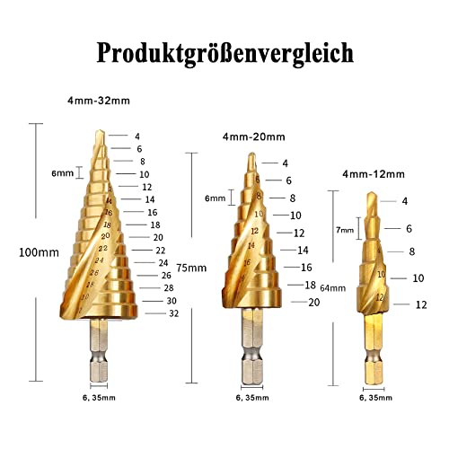 Trapano a Gradini, Trapano a Cono HSS per Metallo, Legno, Plastica, da 4 a 32 mm