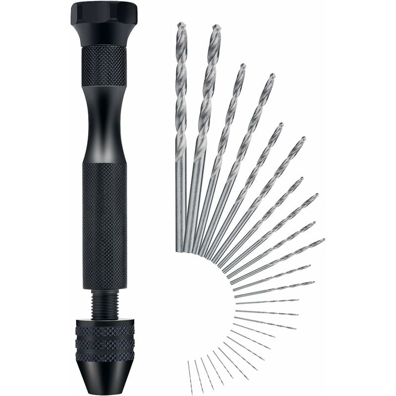 VERSATILE: Perfetto per lavorare su modelli, legno, gioielli, ambra, plastica e molti altri progetti fai-da-te che richiedono una foratura precisa. PORTATILE E DIVERSE DIMENSIONI: Design delle dimensioni della penna, facile da trasportare e riporre. 25 punte da trapano di dimensioni diverse possono soddisfare tutte le tue esigenze (0,5/0,6/1,0/1,2/1,5/1,8/2,0/2,35/3,0 mm).< /p> REGOLABILE: Con supporto per trapano regolabile che può ospitare trapani di diverse dimensioni. Questo trapano è pronto per qualsiasi hobby e lavoro di precisione. MATERIALI DI ALTA QUALITÀ : Realizzato in lega di alluminio , Il trapano a mano è molto robusto e resistente. Inoltre, la punta elicoidale da 25 pezzi è realizzata in acciaio ad alta velocità per garantire che possa gestire costruzioni di precisione. FACILE DA USARE: Allenta la testa della morsa, inserisci la punta del trapano, quindi avvita saldamente la testa, individua il punto, fissa la parte superiore del manico mentre giri il manico, quindi