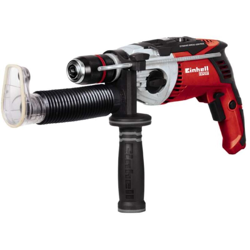 Trapano a percussione Einhell TE-ID 1050 CE ideale per forare, forare con percussione, avvitare e svitare su legno, metallo e muratura. Dotato di componenti meccanici all avanguardia e innovazioni meccaniche di alto profilo tecnico, il trapano destinato all utilizzo professionale con performances precise e nette. Vediamo, nello specifico, le caratteristiche principali: Motore da 1050 W potente, robusto, ottimo per lavori particolarmente gravosi Testa ingranaggi in alluminio Mandrino autoserrante da 13 mm per il cambio veloce delle punte Doppia velocit da impostare secondo il lavoro da fare e il materiale su cui si opera Adattatore per aspirazione polveri/trucioli per avere la zona lavoro sempre pulita Regolazione della velocit con selettore per adeguarsi di volta in volta al materiale da forare Impugnatura principale antiscivolo e impugnatura laterale rivestita in soft-grip, con vano porta punte, che garantisce una maggiore aderenza e consente di trasferire la forza dell operatore