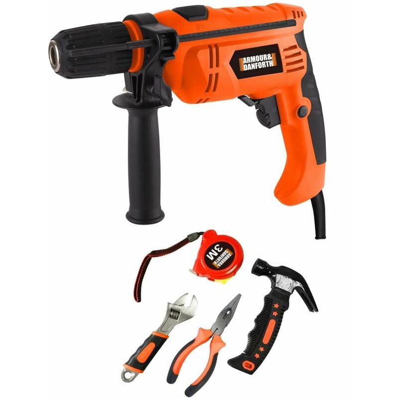 Mandrino autoserrante da 13 mm. Dotato di impugnatura supplementare e asta di profondità. Valigetta con 5 accessori compresa Tipologia - Trapani/avvitatori Marca - Armour & danforth Modello - TMX5864 Altezza - 38 cm Lunghezza - 31 cm Larghezza - 8 cm Peso - 1,5 kg Tipo mandrino - Autoserrante Diametro mandrino - 13 mm Tipo impugnatura - Ergonomica Impugnatura antiscivolo - Sì Lunghezza trapano - 31 cm Potenza - 500 W Volt - 230 N° velocità - 1 Velocità regolabile - Sì Velocità massima - 3000 rpm Capacità azione su metallo - 13 mm Capacità azione su legno - 25 mm Capacità azione su calcestruzzo - 16 mm