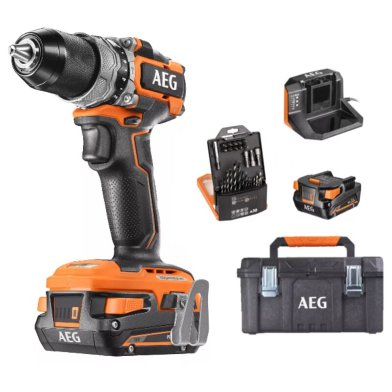 Trapano a percussione brushless da 18 V AEG BSB 18SBL con due batterie da 2 Ah, caricabatterie, set di 30 punte e cassetta degli attrezzi.Trapano a percussione con motore brushless ad alte prestazioni. Strumento ideale per eccellenti prestazioni con tutto il comfort possibile. Dotato di maniglia rivestita per una ottima presa e conformazione durante l'utilizzo. Possiede la tecnologia Sub Compact per offrire massima produttività ed ergonomia.Modalità di percussione a 26.000 bpm per foratura di calcestruzzo e muratura fino a 13 mm. Dotato di 2 velocità, 0 - 450 giri/min e 0 - 1700 giri/min e frizione a 24 stadi per il massimo controllo durante le applicazioni di avvitamento Caratteristiche del prodotto Accessori 2 Batterie 2Ah, caricabatterie, set 30 punte e Cassetta per gli attrezzi Alimentazione Batteria Batteria Inclusa Coppia di serraggio massima 65 Nm D.Max legno (mm) 40 D.Max metallo (mm) 13 D.Max muro (mm) 13 Mandrino 13 mm Marca AEG Percussioni al minuto 26000 bpm Velocit a