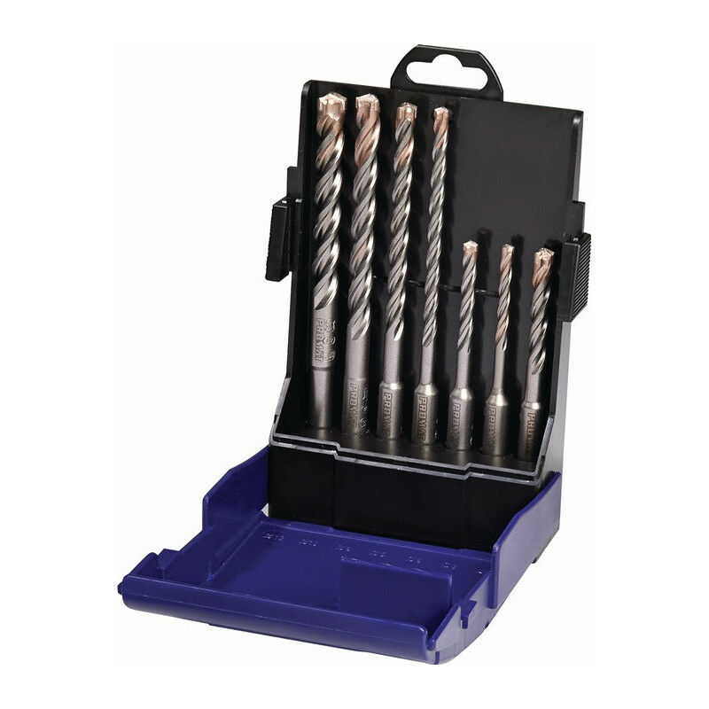 SDSplus · Con 4 taglienti · Set 7 pezzi, Ø 5/6/6/8/8/10/12 mm · Fornito in robusta scatola di plastica Altri dati tecnici: · Confezione: scatola di plastica