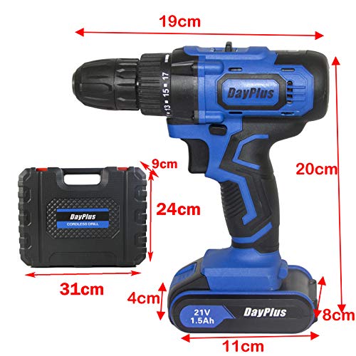 questo articolo include: 1 x trapano cordless, 2 x batterie, 29 accessori gratuiti (punte per trapano e avvitatore, cacciaviti e supporto per punte per trapano), 1 x caricabatterie, 1 x manuale utente e 1 x custodia per il trasporto. Non hai alcun rischio di comprarlo.