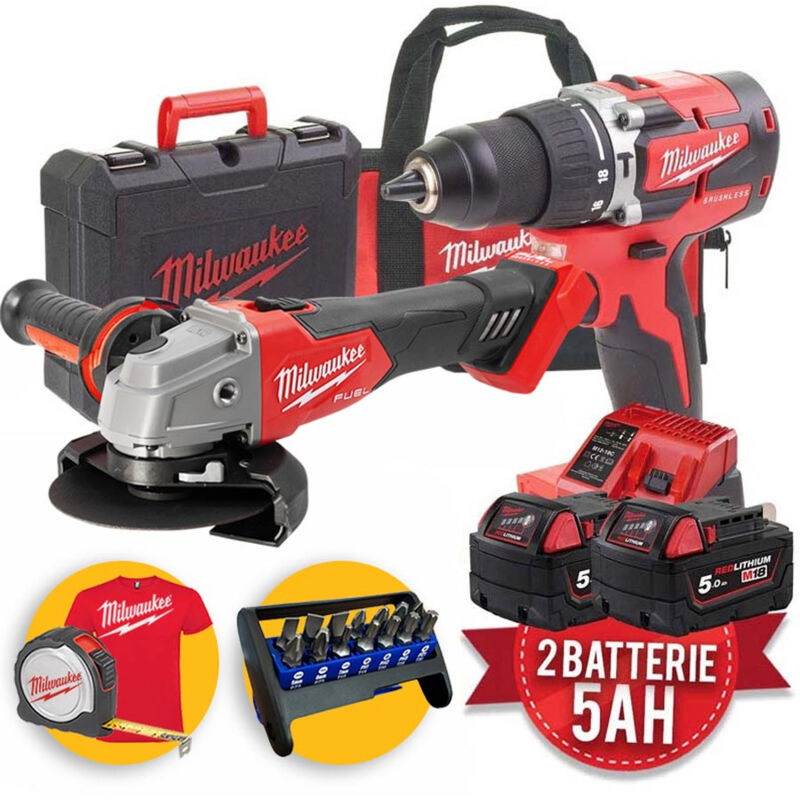 Il Kit comprende: M18 CBLPD - Trapano con percussione compatto 18V, motore senza spazzole, 2 velocità, 60 Nm, lunghezza 165 mm, 1,8 Kg M18 FSAG115X - Smerigliatrice angolare con interruttore a slitta 18V, motore senza spazzole, tecnologia FUEL, disco da 115 mm, prof. taglio max 28 mm