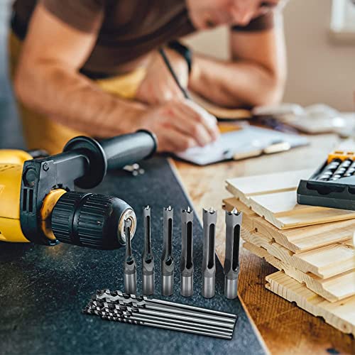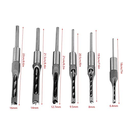 Trapano piazza-foro, 6 pezzi trapano foro quadrato Mortasatrice scalpello set,set punte a scalpello per mortasatrice per lavorazione del legno, 6 Dimensioni(6.35mm,8mm,9.5mm,12.7mm,14mm,16mm)