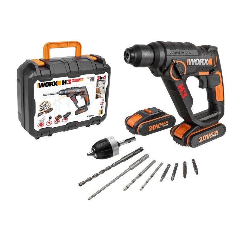 Trapano tassellatore 2 batterie 20v-lithium batterie 20v/2ah lithio - 1,2j - mandrino supplementare e punte