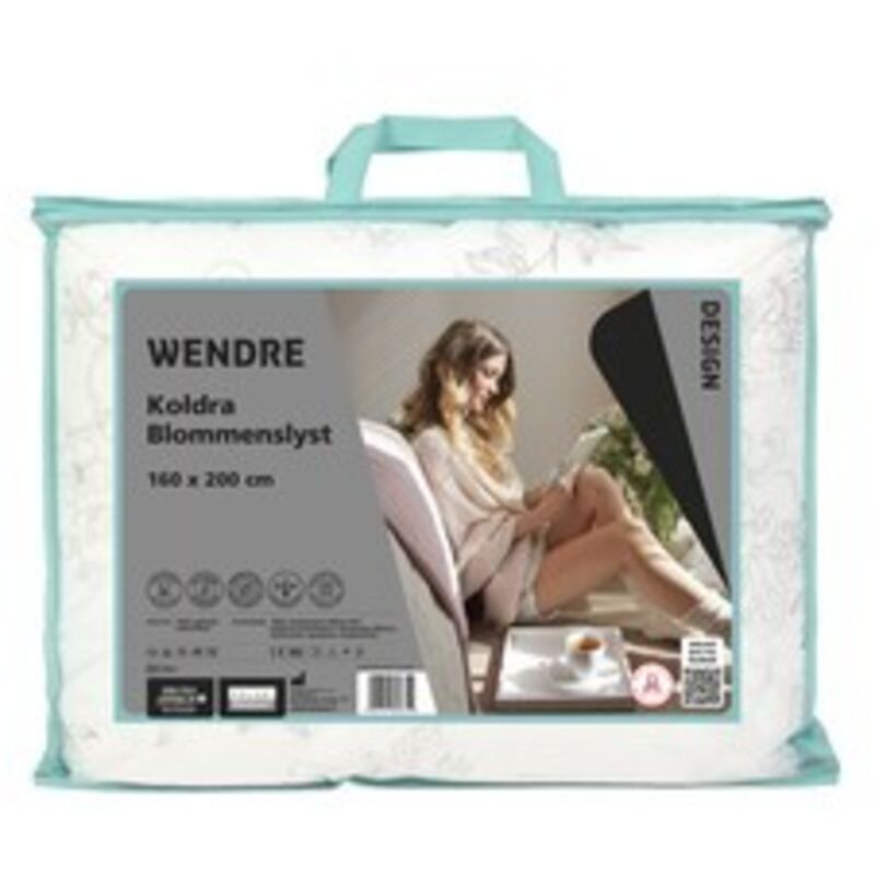 Trapunta Blommenslyst, dimensioni: 155x200 cm. Trapuntatura: onda. Tipologia: multistagione. Finitura: tubazione. Rivestimento: 100% poliestere (microfibra stampata), 82 g/m². Imbottitura del piumino: 100% fibra HCS riciclata, 300 g/m². Imballaggio: borsa PEVA con cerniera e maniglia.