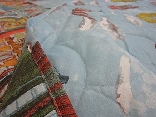 Trapunta Copriletto Primavera-Estate Una Piazza e Mezza Fantasia MONGOLFIERA E CITTA' 100% Cotone da 100grammi Misura 220x280 Colore:Celeste+Arancio MADE IN ITALY NOVITA' 2022!!!!