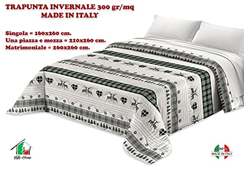 PIUMONE TRAPUNTATO INVERNALE Mod. BAITA la trapunta calda da 300 gr/mq con fantasia tirolese raffigurante stelle alpine, cuori, pinete e cervi, suggestivi e meravigliosi motivi in tipico stile tirolese, disegno classico per ambienti rustici chalet alpini baite montane e al contempo adatto anche per ambienti moderni dove creare atmosfere calde ed accoglienti che allieteranno il vostro riposo. Trapunta double face, un lato in fantasia e un lato tinta unita.