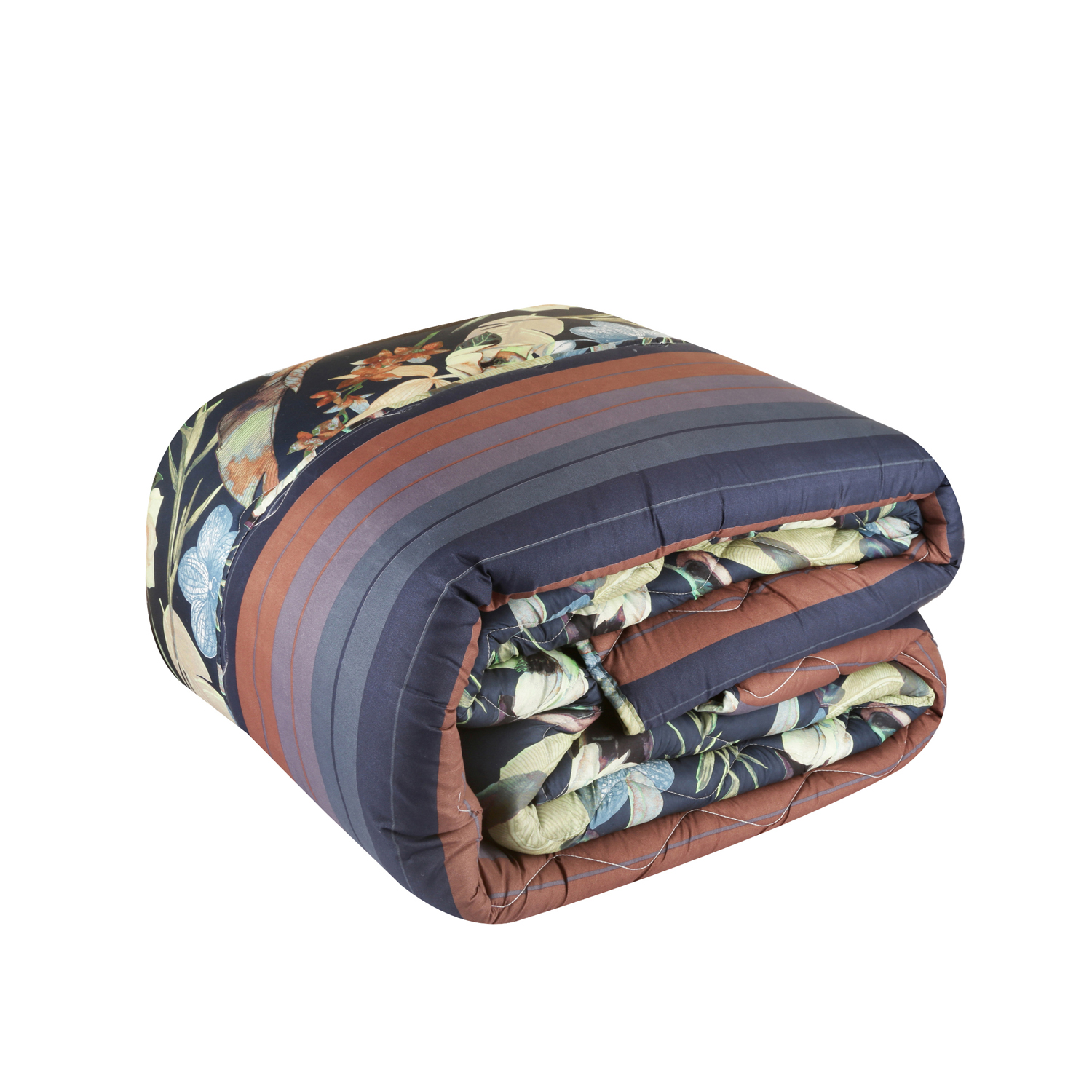 La collezione di trapunte è Made in Italy e perfetta per l'inverno: è pronta ad avvolgerti in un abbraccio soffice e caldo. L'imbottitura di 280 gr/mq ti dona il massimo comfort nelle notti più fredde dell'anno. Essendo double face, puoi posizionarla sul letto dal lato che preferisci. Lato con stampa transfer a fiori o motivo a righe? Scegli tu! Entrambi sono sui bellissimi toni dell'ottanio e puoi cambiare ogni volta come desideri. Soffice e davvero elegante, sarà il dettaglio che cercavi per la tua camera da letto. Lavabile in lavatrice a 30°. Misura per letto 1 piazza e mezza: 220x250 cm.