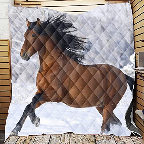 Trapuntino Copriletto Matrimoniale Singolo, Chickwin 3D Animale Coperta Primaverile Trapunta Estivo Trapuntato Coperta Letto Leggera per Camera da Letto (Cavallo,226x260cm)