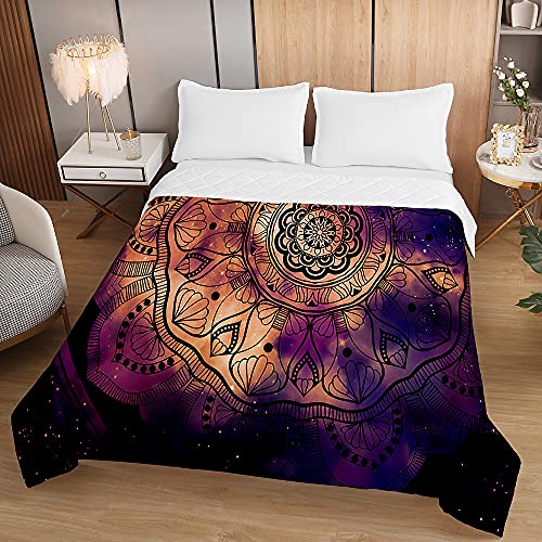 Trapuntino Copriletto Trapuntato Matrimoniale Singolo, Chickwin Stampa di Mandala Coperta Primaverile Estivo Trapunta Goffrato Coperta Leggera per Camera da Letto (Universo viola,200x230cm)