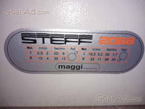 Trascinatore Maggi 380 V. STEFF 2068 completo di Tutto Dati tecnici Potenza motore 0.58 - 0.75 /0.8 1 HP - 0.52/0.75 Kw Velocità di avanzamento 2-4-5.5-6.5-11-13 - 16,5 - 33 ML. minuto 50(Hz) N. Rulli 6 Diametro Rulli 120 mm Larghezza rulli 60 mm. Corsa Molleggio Rulli 20 mm. Peso Netto 75 Kg cambio posizione ingranaggi per modificare velocità in perfetto stato ritiro su Grosseto