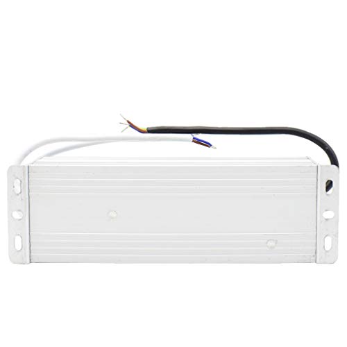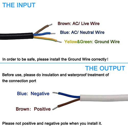 MATERIALE DI ALTA QUALITÀ: Involucro in materiale di alluminio, struttura completamente chiusa, livello impermeabile IP67. Un cavo nero di ingresso CA su un'estremità e due cavi bianchi di uscita CC sull'altra estremità.(150W di potenza massima su un singolo cavo, entrambi 150W di potenza totale)