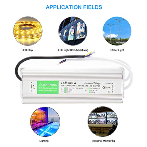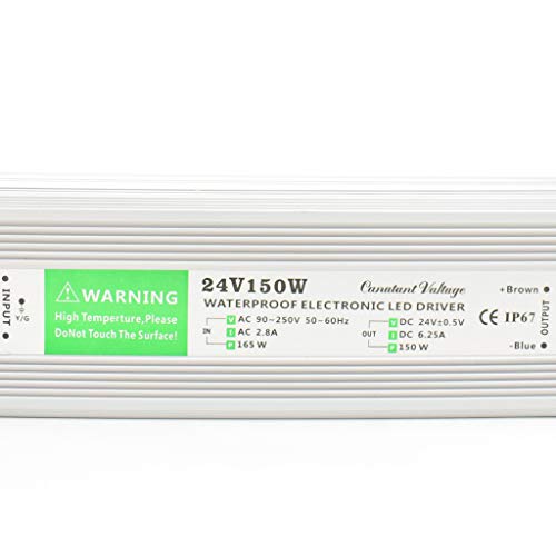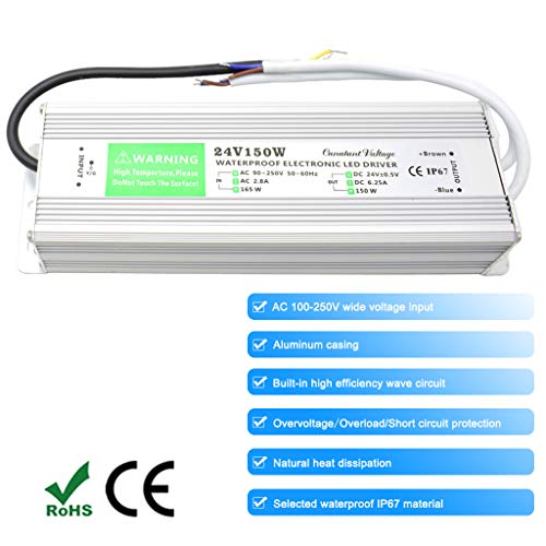 Trasformatore LED 24V 150W 6.25A Driver LED a Tensione Costante IP67 Impermeabile per Esterni AC 230V 24V DC Alimentatore per Striscia LED