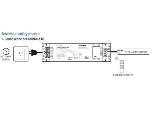 Alimentatore Trasformatore CV Voltaggio Costante Dimmerabile 2 in 1: Push Dimmer(Pulsante N.O. Normalmente Aperto) + Telecomando RF 2.4G