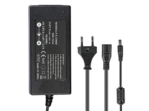 Trasformatore Alimentatore 24V 60W 2.5A,Con Spina EU, Trasforma Da 220V a DC 24V, Colore Nero (60W 24V 2.5A)