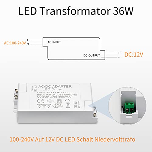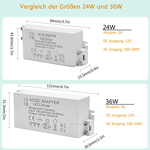 【Forte stabilità】36W LED trasformatore 220V a 12V convertitore di tensione.Tensione di ingresso AC 100-240V (supportato per gli Stati Uniti, Regno Unito e Europa) 50/60Hz trasformatore.Tensione di uscita costante 12V DC, e hanno una lunga durata. Nessun carico minimo.La potenza totale non deve superare l'80% della potenza massima.