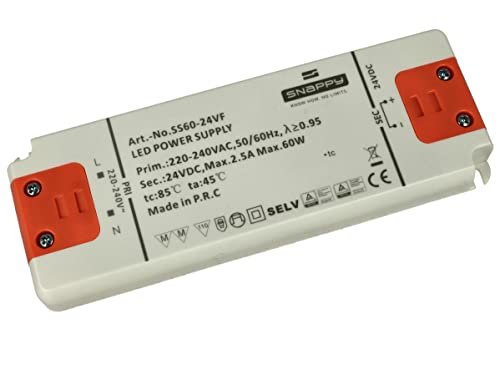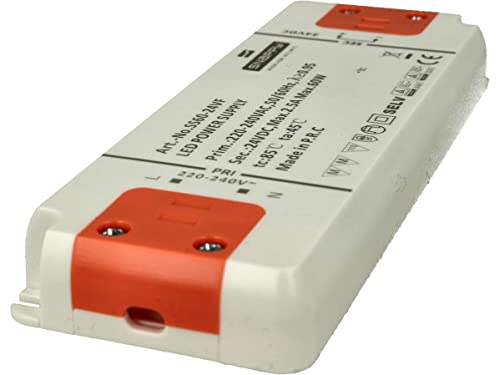 Trasformatore Slim 24V, Alimentatore Sottile DC24V, Design Piatto, Ideale Per Striscia Led 24V Installazione Nel Mobile (60W 2.5A 160X58X18mm)