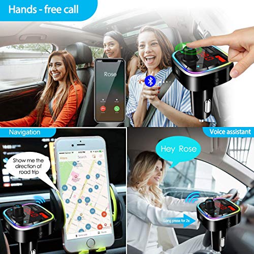 Trasmettitore FM Auto Bluetooth 5.0,Adattatore per Bluetooth Auto Audio Radio Auto,QC3.0 Wireless Kit per MP3 Bluetooth Auto,Trasmettitore Bluetooth per Auto Vivavoce 2 USB Car Charger,Supporto TF/USB