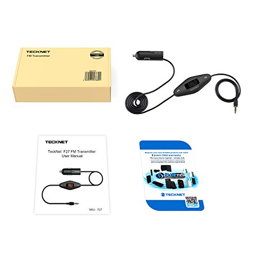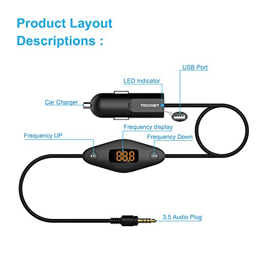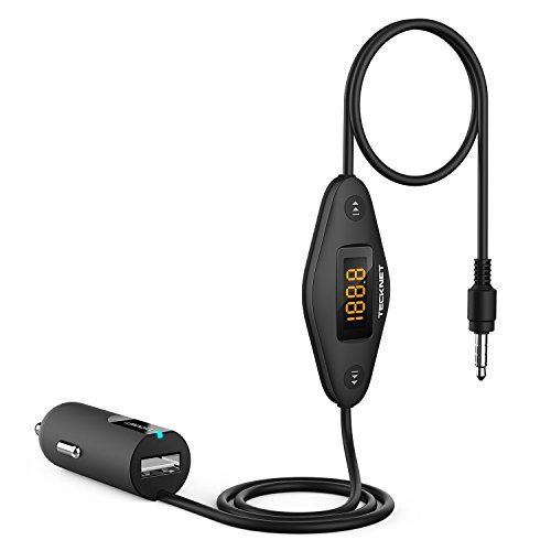 Trasmettitore FM Auto, TeckNet FM Trasmettitore Radio Adattatore con Caricabatterie Auto USB 5V/2.1A e Spina Audio da 3,5 mm, per iPhone 7/6, iPod e Altri Smartphone
