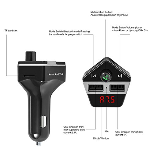 Trasmettitore FM per Auto, Vingtank Trasmettitore Bluetooth Wireless per Auto Veicoli Lettore Musica con Doppia Porta USB di Ricarica per iPhone, Samsung and other smartphones (Nero)