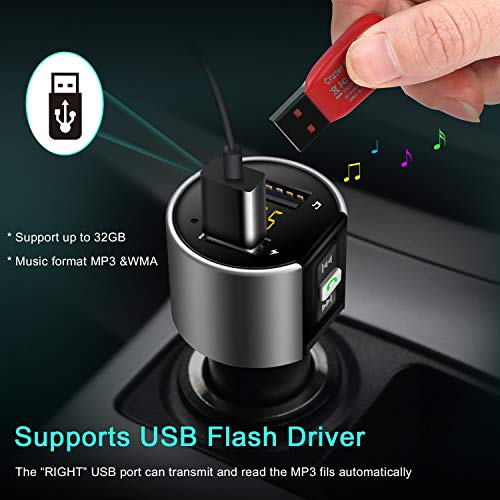 Trasmettitore FM Bluetooth, Auto Audio Ricevitore Adattatori Vivavoce Car Kit con CVC Tecnologia, Wireless Trasmettitore Bluetooth Auto con Display LED, Caricabatterie Auto 2 Porte USB 5V/2.4A &1A