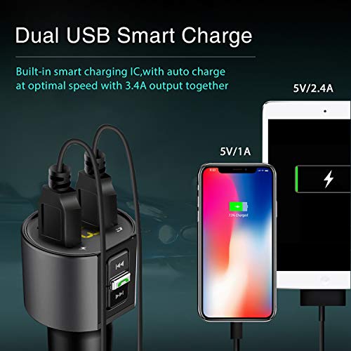 5 V/3.4 a Dual USB porte di ricarica ✔ auto trasmettitore adattatore viene fornito con due porte di ricarica USB, supporta la ricarica due dispositivi simultaneamente a una velocità di ricarica super veloce. Una delle porta USB del trasmettitore FM è stato progettato per leggere file musicali da U-disk o lettor