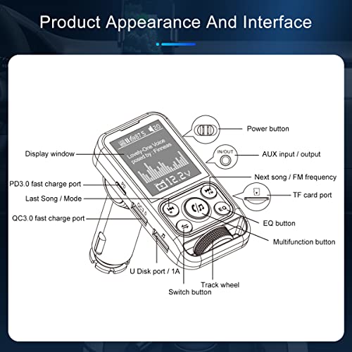 [Ricarica rapida] Questo trasmettitore FM Bluetooth si ricarica rapidamente. Supporta trasmettitore FM, Bluetooth, ricarica USB, lettura disco U, luci colorate, funzione EQ