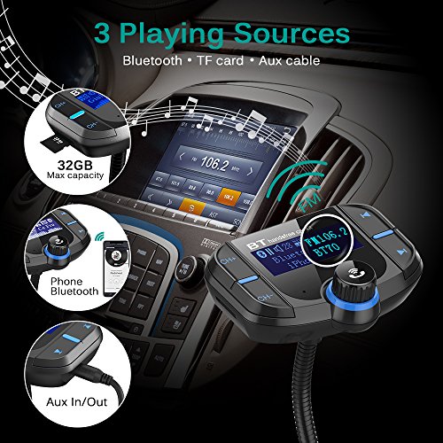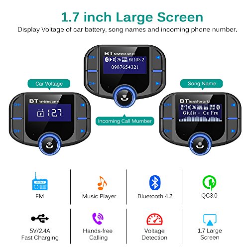 Trasmettitore FM Bluetooth,CHGeek Caricabatterie Auto con 2 Porte USB QC3.0+5v 2.4A Wireless Radio Audio Supporta Vivavoce TF Card MP3 Player.