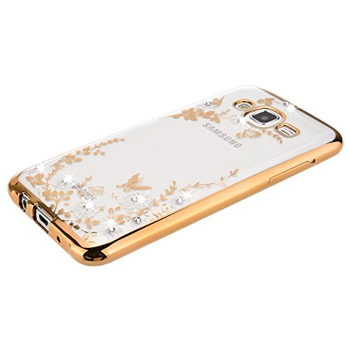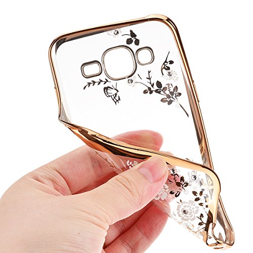 Trasparente Cover per Samsung Galaxy J5 (2015), HB-Int TPU Gel Silicone Copertura Farfalla Bianco Fiori Marvel Disgnate Shell Placcatura Lussuoso Oro Gold Custodia Ultra Slim Sottile Morbida Bling Glitter Intarsiato Diamanti Diamante Case Ultra Leggera Anti Graffi Protettivo Cover