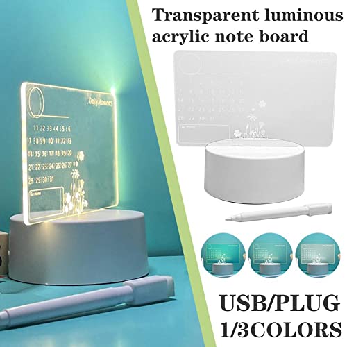 Trasparente Luminoso Acrilico Nota Bacheca con Penna Adulto Messaggio Casa Led Notte Cancellabile Scrivania Scrivania Luce Desktop