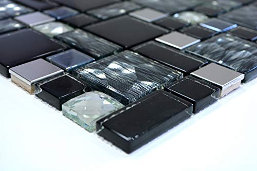 Trasparente nero in acciaio inox piastrelle a mosaico mosaico di vetro combinazione doccia a parete