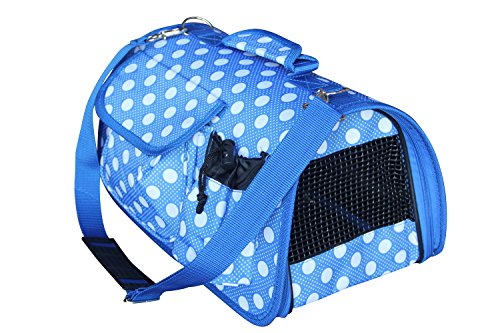 BPS (R) Trasportino, Borsa di tela a pois per cane, gatto, animali domestici, animali, dimensioni: L, 43,5 x 25 x 25 cm blu blu