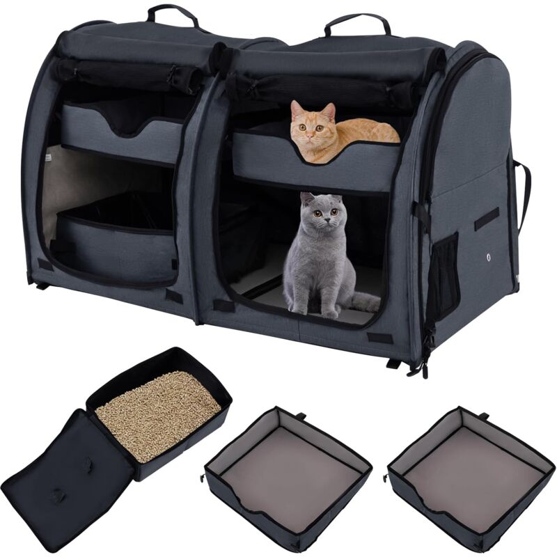 INFORMAZIO 【Design Versatile a Doppio Compartimento】Il grande trasportino per animali domestici dispone di 2 ampie stanze separate da una cerniera, che ti consente di portare più animali insieme. Oppure puoi aprire la cerniera e creare un ampio singolo compartimento per animali di grandi dimensioni per soddisfare esigenze diverse. 【Luogo di Riposo e Gioco Confortevole】Poiché i tappeti a doppio uso sono dotati di un lato in velluto morbido per un tocco caldo e di un lato in PP fresco per un'esperienza fresca, il nostro trasportino portatile per animali domestici offrirà comfort ottimale agli animali domestici in estate e in inverno. 【Materiale Premium Anti-graffio】Realizzato in tessuto cationico di alta qualità, caratterizzato da un'eccellente resistenza all'usura e durata, il trasportino per animali domestici è progettato per durare nel tempo. Pertanto, il trasportino per animali a doppio scomparto può resistere ai danni delle zampe affilate dell'animale. 【Dettagli Amichevoli per Più