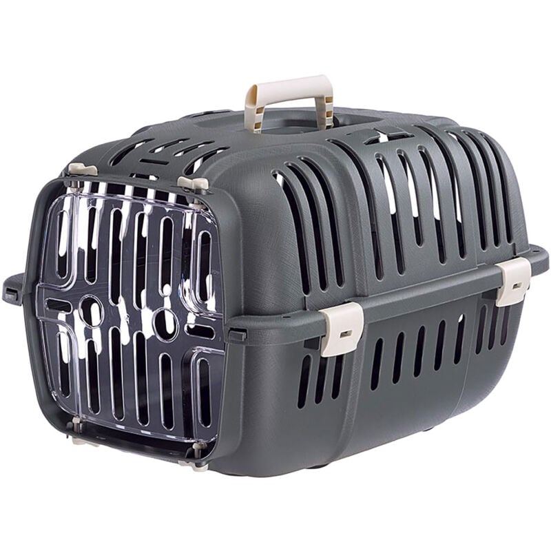 Trasportino 'jet' cm 37 x 57 x h 33 Realizzato in robusta plastica antigraffio, pratico e leggero. Per gatti e cani di piccola taglia, indicato per viaggi in qualsiasi mezzo di trasporto, auto, treno, aereo o nave. Design innovativo con agganci e maniglia in colori. Porta trasparente resistente agli urti, dotata di fori di aerazione che permette la visibilita dell'animale all'interno. Fessure di ventilazione per ambiente ottimale ben areato. Forma arrotondata e porta provvista di clip di chiusura di sicurezza. Comoda maniglia per il trasporto, robusti agganci di chiusura di sicurezza sui lati. Facilmente montabile e smontabile per la pulizia. Prodotto ecosostenibile realizzato in plastica riciclata. Vari colori. cm 37 x 57 x h 33 Categoria dell'articolo: Agricoltura - Attrezzature ricovero/trasporto animali