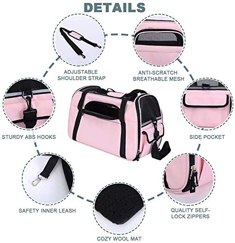 [Borsa da viaggio per cani di ampia portata] Usa il trasportino per cani in due modi con tracolla regolabile: borsa a tracolla o borsa a tracolla. Le maniglie per il trasporto con un cuscinetto possono essere incollate per una sensazione di mano confortevole. Perfetto per viaggiare in auto, treno, aereo ecc. Ci sono tasche laterali su entrambi i lati per giocattoli da compagnia e piccoli accessori;