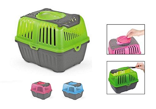Trasportino Neyo Pet Carrier - Accessorio da viaggio in plastica, con doppia apertura, per roditori, conigli e cuccioli (Rosa)