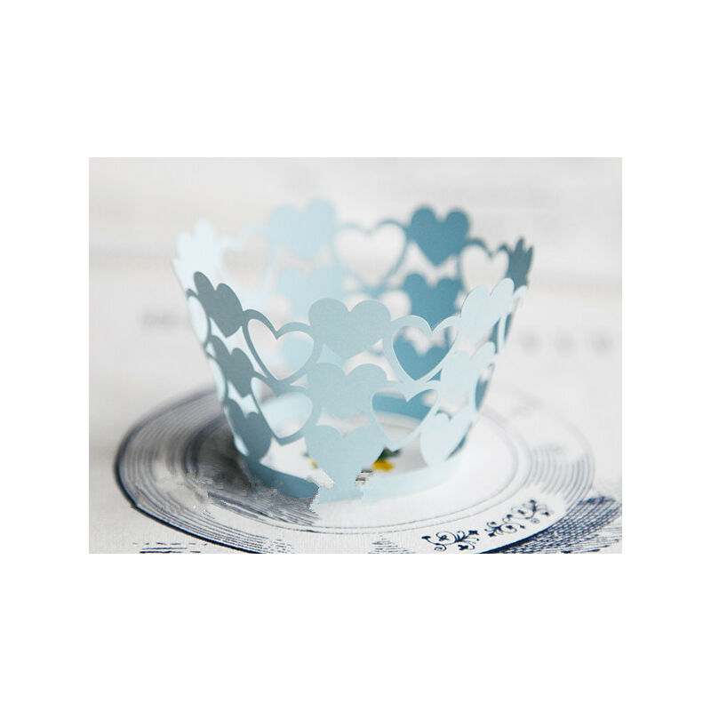 Modello: blu del cuore del merletto Materiale: alta qualità standard di cibo carta della perla Formato: 8.25 cm (diametro superiore) X 5 cm (altezza) X 5 cm (diametro inferiore) Technic: taglio laser Nota: -Non metterle in forno, destinati solo per la decorazione.