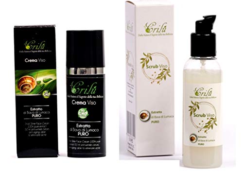 Trattamento Viso alla Bava di Lumaca, Crema Viso 50 ml + Scrub Delicato 100 ml AZIONE ILLUMINANTE E LEVIGANTE