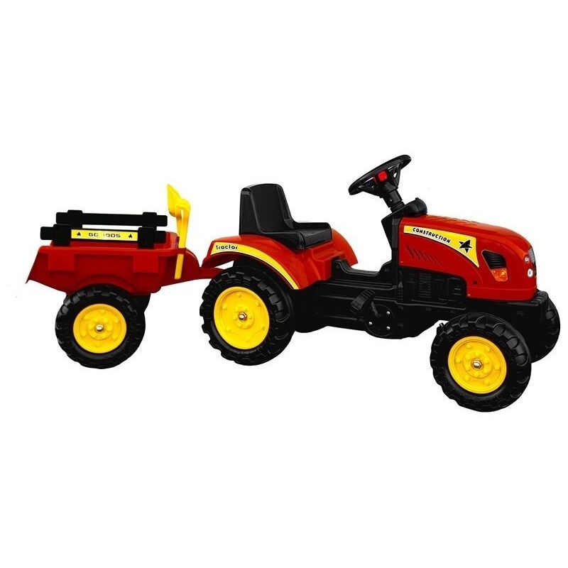 Un grande trattore con rimorchio a pedali Il trattore rosso Branson diventerà il migliore amico di tuo figlio. È un aiuto fantastico per incoraggiare il tuo bambino a impegnarsi nell'attività fisica quotidiana, ma il suo utilizzo non è complicato. Il piccolo ha a disposizione un manubrio e un seggiolino, rendendo questo gioco molto più semplice e meno impegnativo che andare in bicicletta o in monopattino: basta guardare avanti e pedalare. Inoltre, grazie al fatto che la parte principale del veicolo è montata su quattro ruote larghe, il piccolo conducente non deve preoccuparsi di mantenere costantemente l'equilibrio. Cosa rende così popolare il trattore rosso Branson: una moltitudine di elementi aggiuntivi: un rimorchio e la sabbia accessori, - peso ridotto combinato con lavorazione di altissima qualità, - design moderno + adesivi inclusi nel set, - volante ergonomico con clacson, - posizionato su ruote larghe e con battistrada, - sedile ampio e confortevole che aumenta il comfort di
