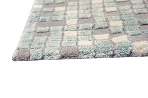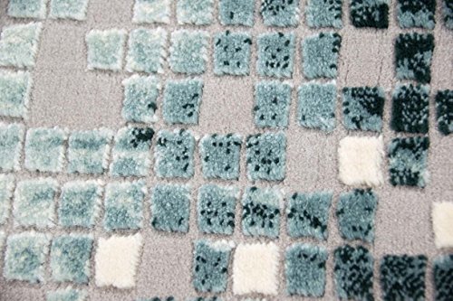 Traum Tappeto Designer Tappeto moderno tappeto da salotto moquette a basso palo con contorno di taglio a scacchi in crema turchese grigio Größe 80x150 cm