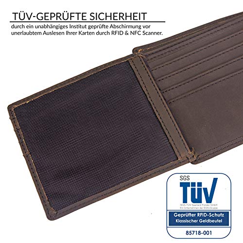 TRAVANDO Portafoglio Uomo Grande OSLO con protezione RFID Porta Carte di Credito nero con Portamonete Borsellino Portafogli in formato Verticale Porta Banconote Wallet Porta monete Regalo (Marrone)