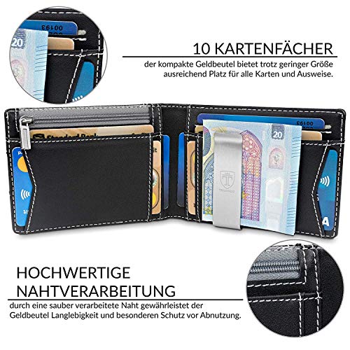 TRAVANDO Portafoglio uomo piccolo con protezione RFID „LONDON“ Porta carte di credito con clip per contanti, Portafogli Porta tessere slim tascabile, Portatessere Raccoglitore banconote