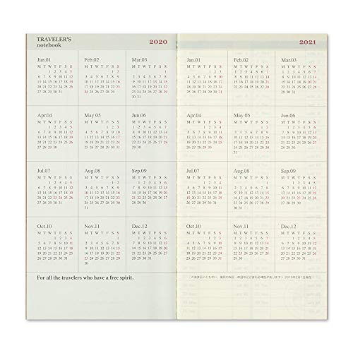 Traveler's Notebook 2020 Weekly Vertical Diary Regular Size - Refill agenda settimanale