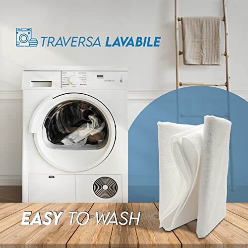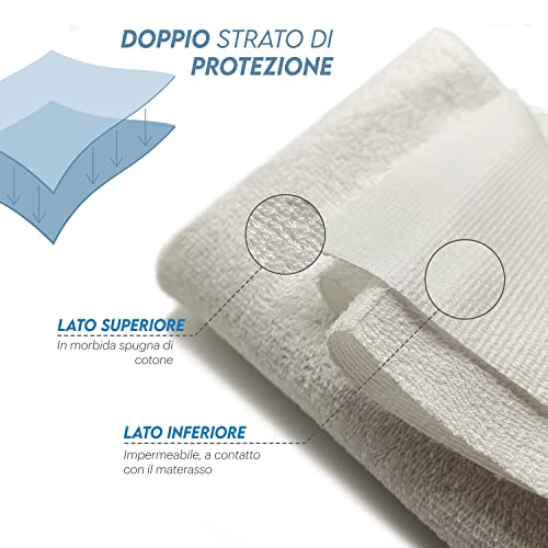 Traversa Versatile: Questa traversina letto è la soluzione ideale per neonati, adulti con incontinenza e persino per i nostri amici animali garantendo una protezione impeccabile per il tuo letto. Lo strato superiore è composto da morbida spugna di cotone certificata secondo gli standard OEKO-TEX 100, mentre la parte inferiore è realizzata in resistente tela cerata impermeabile, assicurando comfort e sicurezza in ogni situazione di utilizzo.