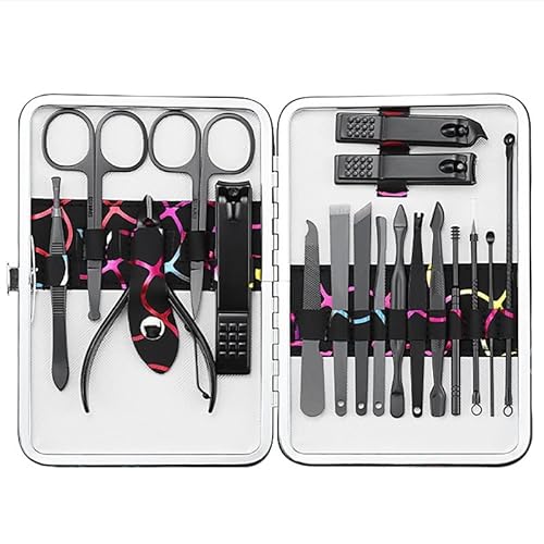 100% nuovo di zecca e qualità, set manicure include cura del viso/cura delle mani/cura dei piedi. Il set di tagliaunghie totale viene fornito con una custodia in pelle, per rendere ogni conponent meno facilmente.
