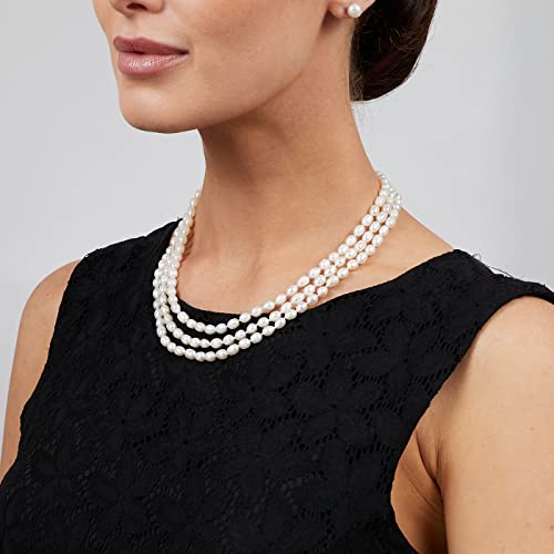 Treasure Bay Bella collana da donna con tre file di perle d'acqua dolce coltivate naturali bianche da 6 mm, Perla Argento sterling, Perla