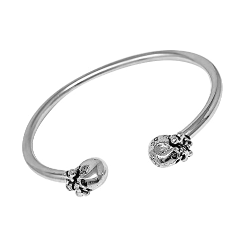 Treasure Bay Bracciale rigido in argento Sterling 925 fatto a mano, da uomo e da donna, con teschi, Misura unica, Argento
