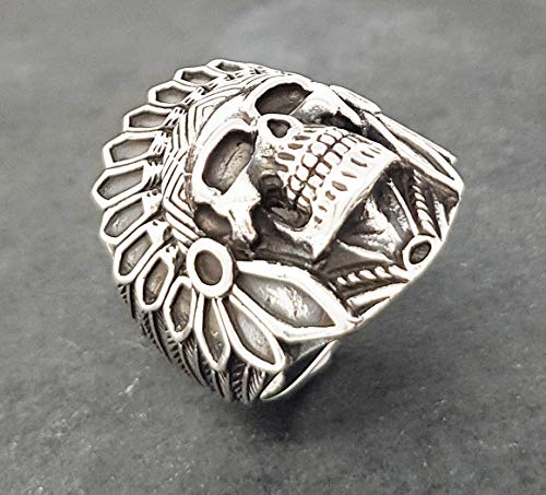 TreasureBay - Anello gotico in argento Sterling 925 con teschio e capo indiano americano e Argento, 66 (21.0), colore: Argento, cod. TBR925SBR